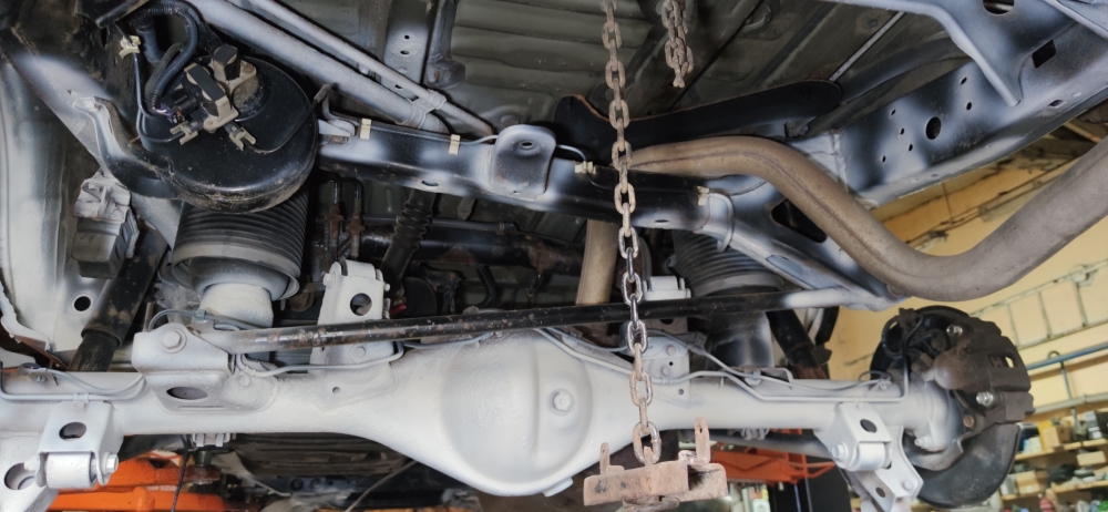 Začínáme důkladným mytím a odmaštěním tlakovou vodou celého podvozku