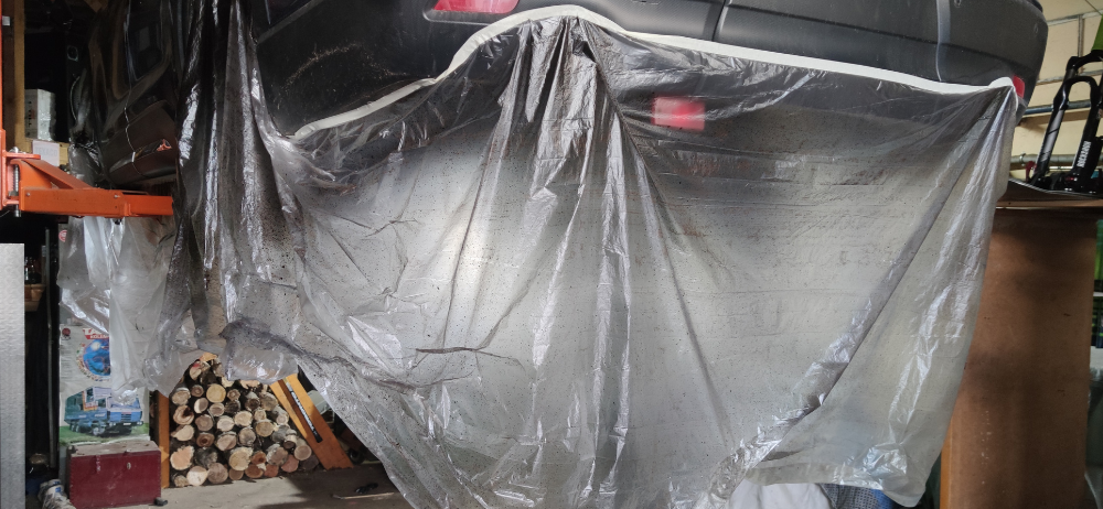 Demontáž všech krytů, podběhů kol, výfuku (pokud je to možné), oblepení vozu a částí podvozku, které nechceme mít od barvy